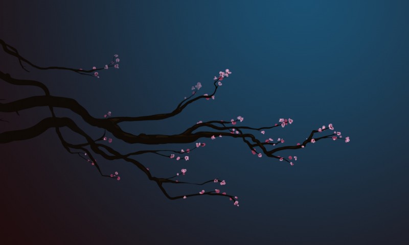 2560x1600, Ветки сакуры на синем фоне - 800x480
