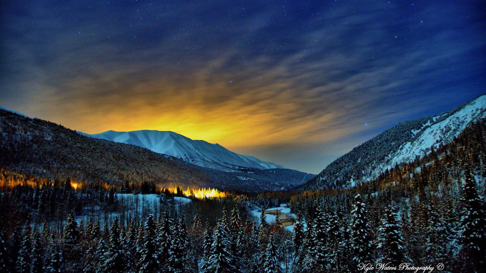 Аляска ночь снег заставки на рабочий стол - 1600x900