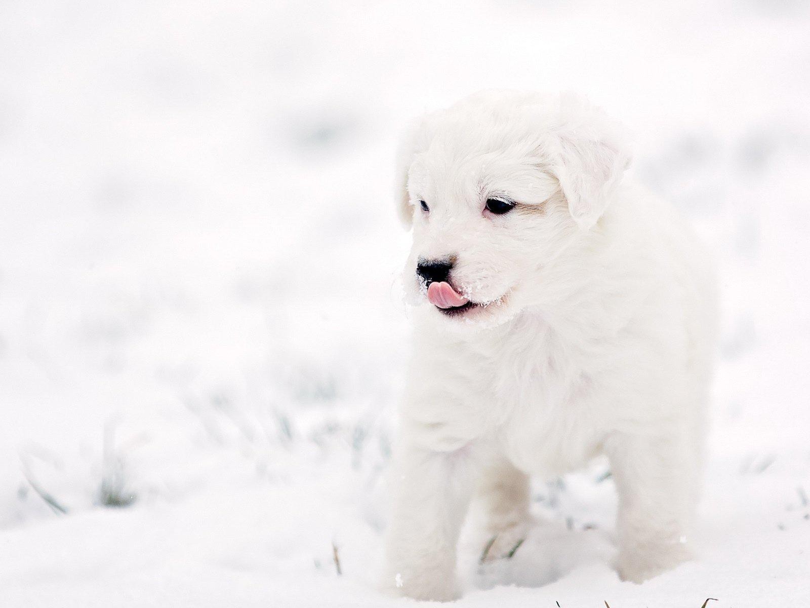 Белая собачка на снегу щеночек фоны - 1600x1200
