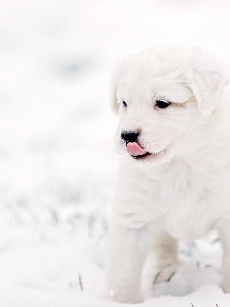 Белая собачка на снегу щеночек фоны - Non-retina iPad