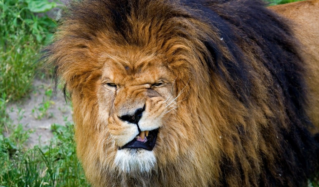 Большой лев с перекошенным лицом обои hd бесплатно - 1024x600