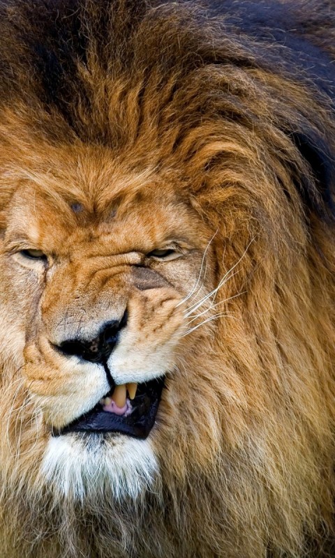 Большой лев с перекошенным лицом обои hd бесплатно - 480x800