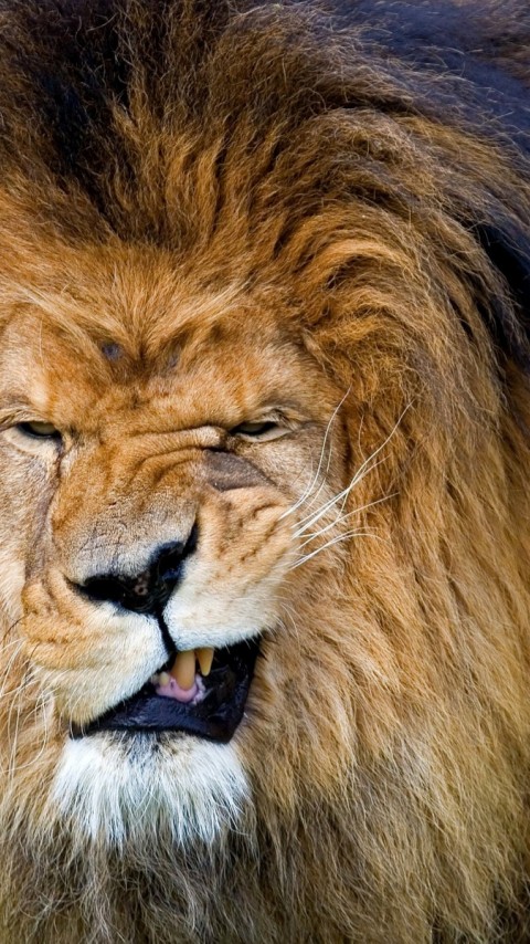 Большой лев с перекошенным лицом обои hd бесплатно - 480x854