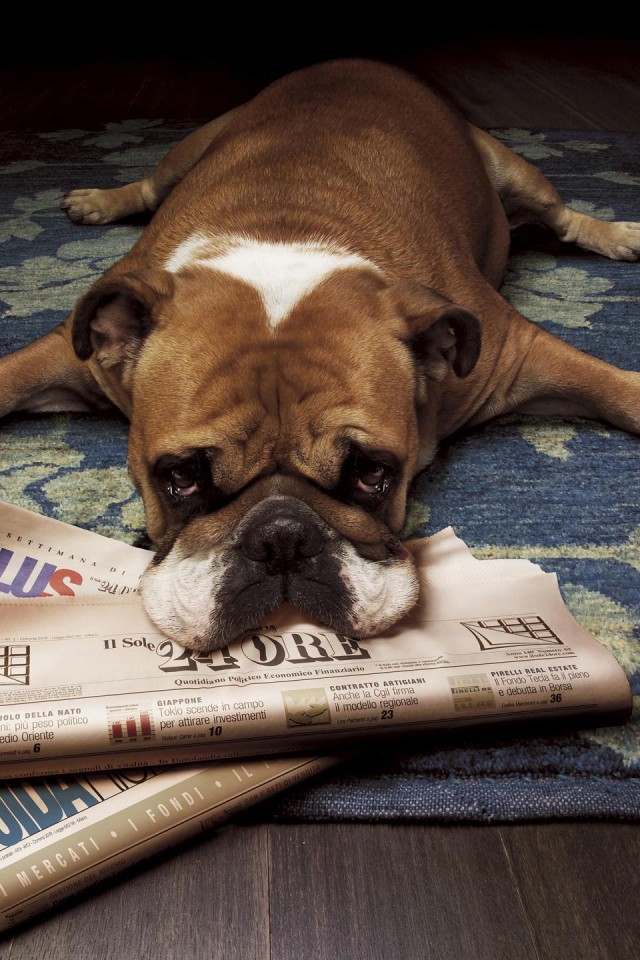 Бульдог, газеты, ленивая собака, английский - iPhone 4/4S/iPod