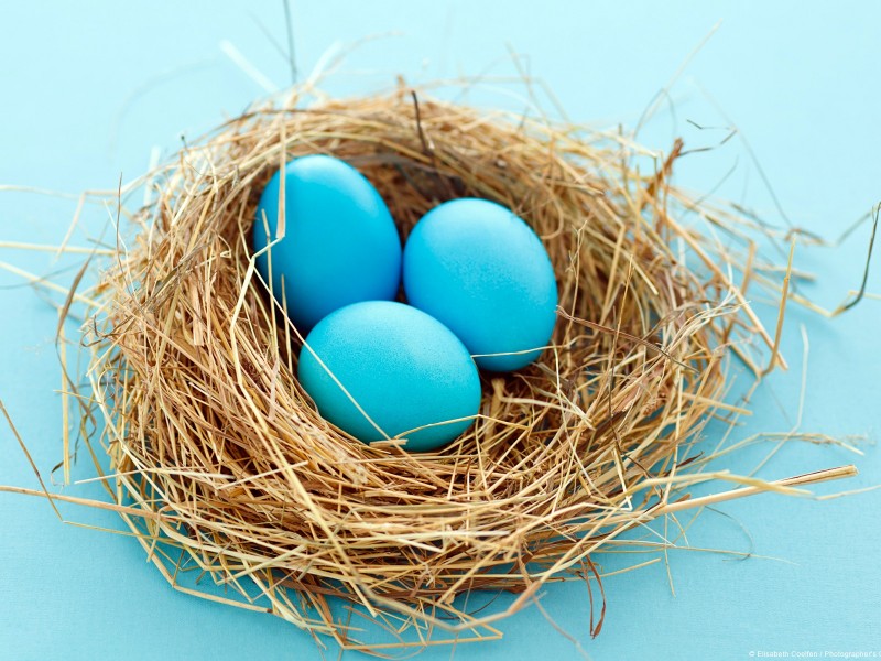 Голубые яйца в гнезде пасхальные яйца обои - 800x600