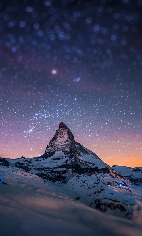 Горный пик, звезды, небо, ночь, небольшой снег, фоны, заставки - 480x800