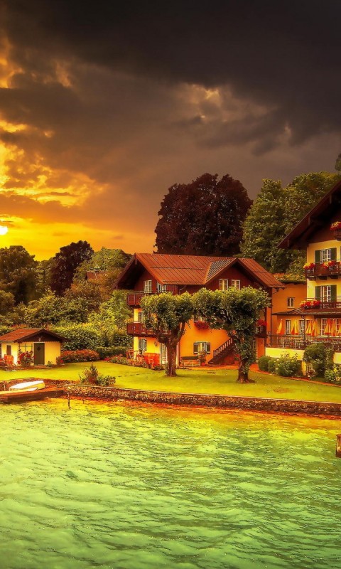 Домики у озера - 480x800