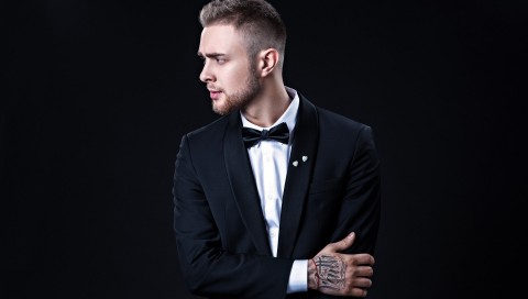 Егор Крид, парень, певец, черный костюм, фон, тату обои HD - 480x272 PSP