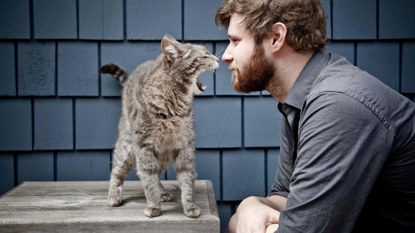 Забавный кот против парня картинки для рабочего стола - 1366x768
