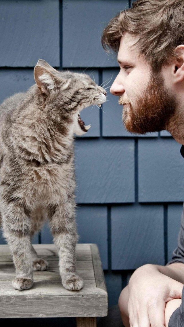 Забавный кот против парня картинки для рабочего стола - iPhone 5/5S (& iPod)