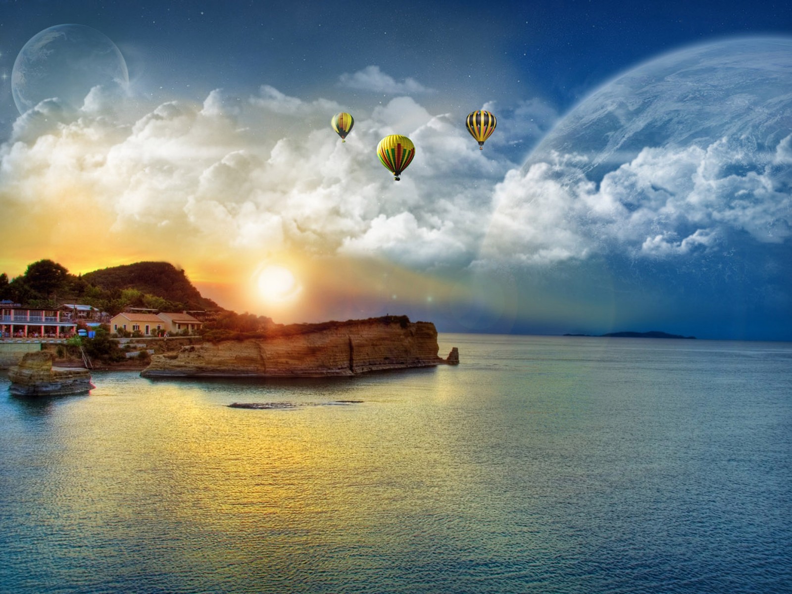 Закат на спокойном море - 1600x1200