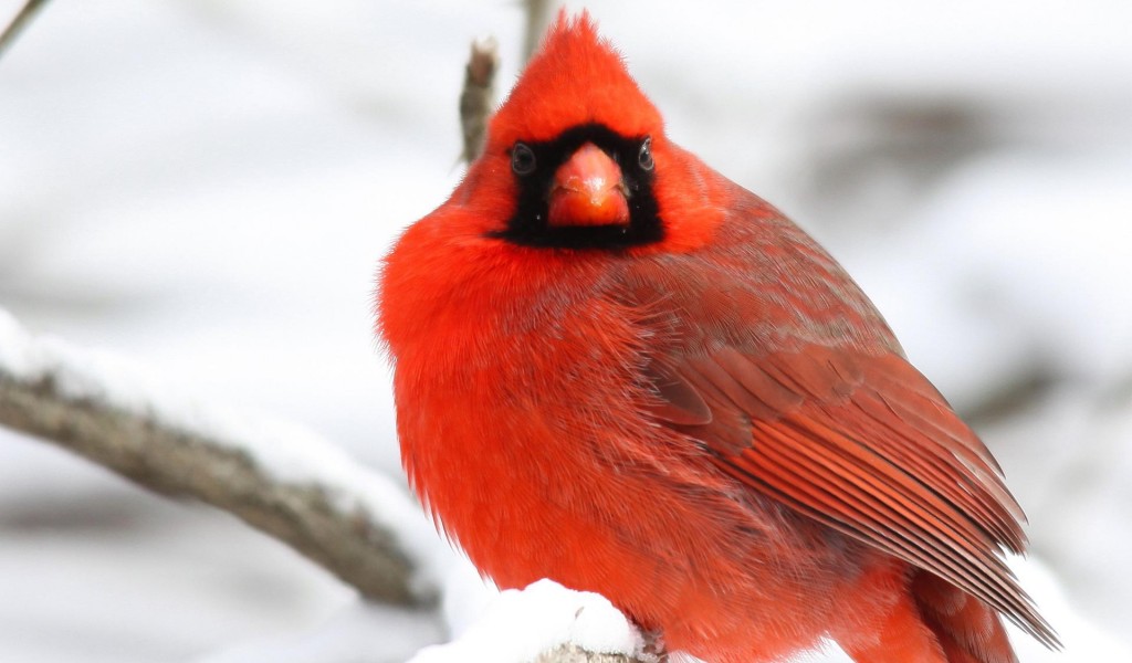 Кардинал Птица, красные перья, деревья, снег, зимняя стужа, бесплатно, картинки - 1024x600