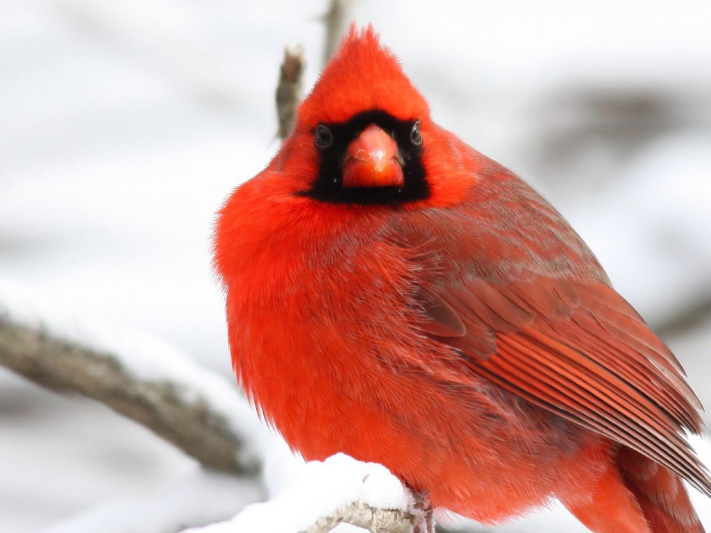 Кардинал Птица, красные перья, деревья, снег, зимняя стужа, бесплатно, картинки - 1024x768