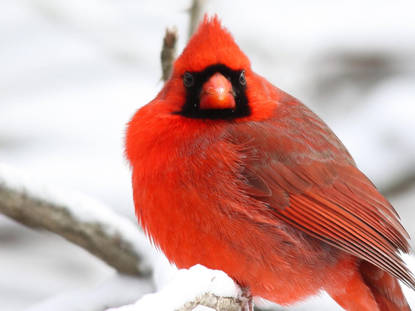 Кардинал Птица, красные перья, деревья, снег, зимняя стужа, бесплатно, картинки - 1600x1200
