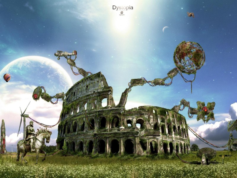 Колизей поросший мхом и рыцарь в доспехах - 800x600
