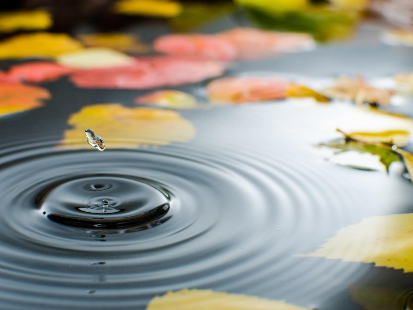 Красивая осень, природа, вода, дождь, листва, фоны, заставки - 1400x1050