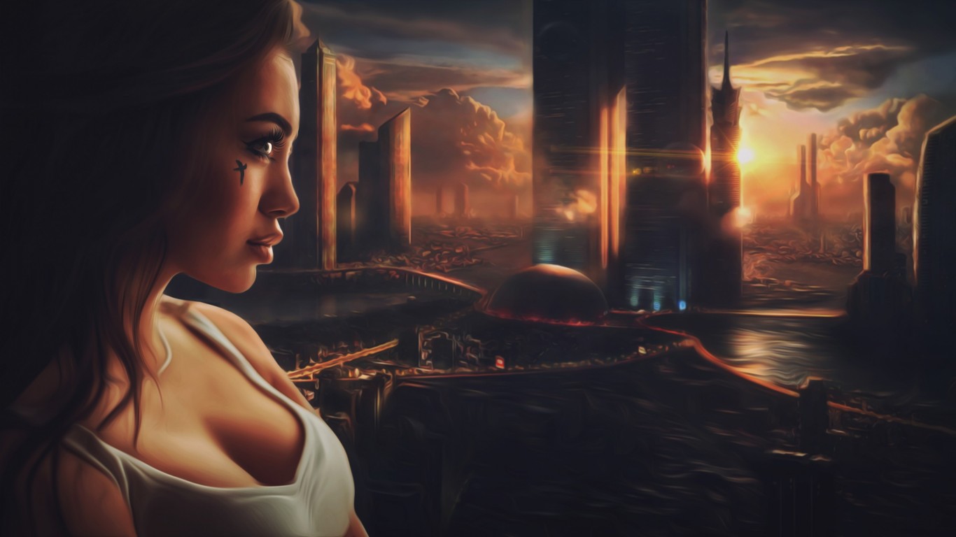 Красивая фантастическая девушка обои - 1366x768