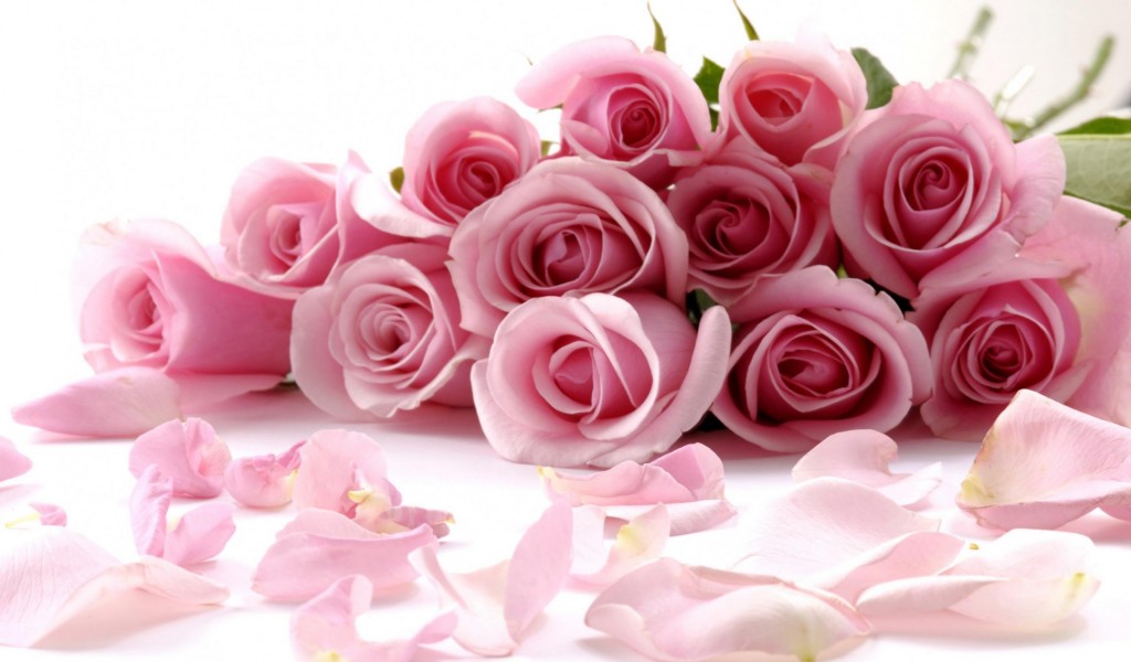 Красивый свадебный букет розовых роз с лепестками обои HD - 1024x600