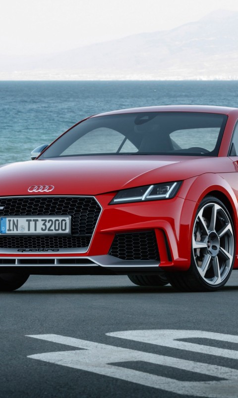 Красный Ауди тт rs 400hp на фоне моря обои HD - 480x800