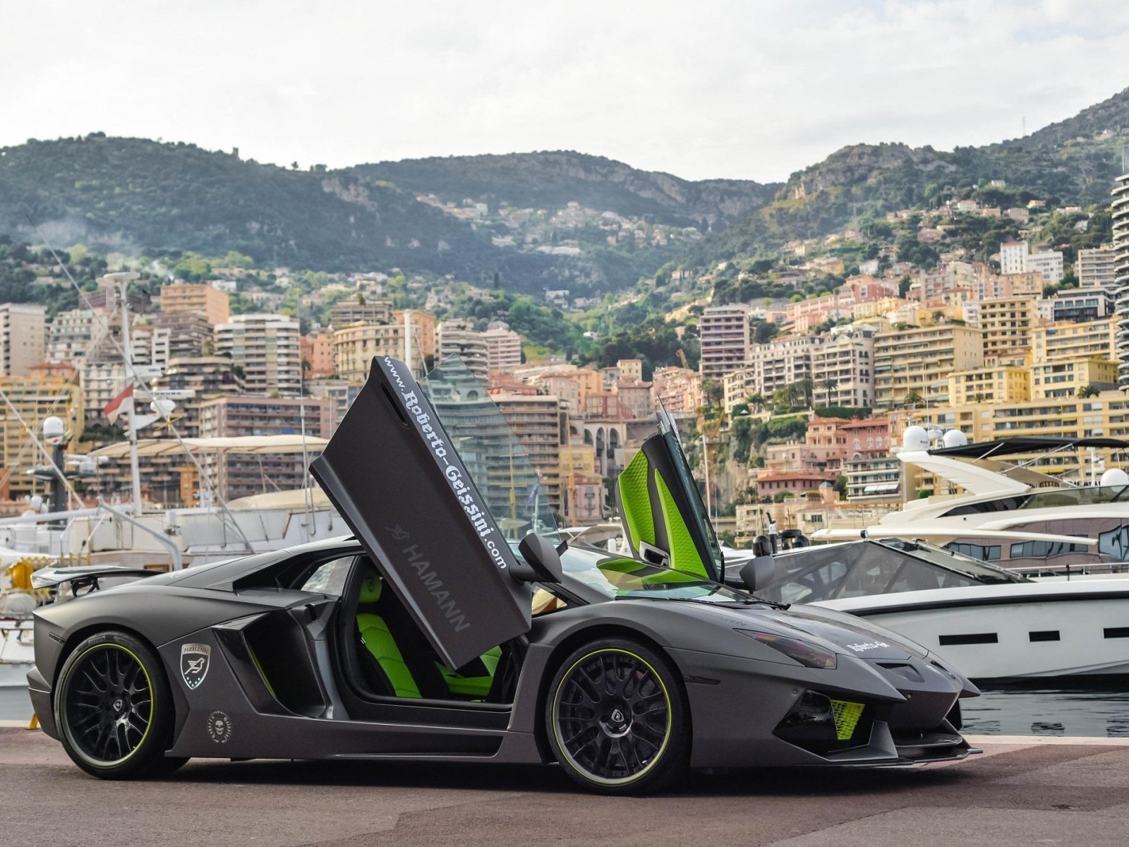 Ламборджини серый Авентадор на пристани фоновые заставки - 1600x1200