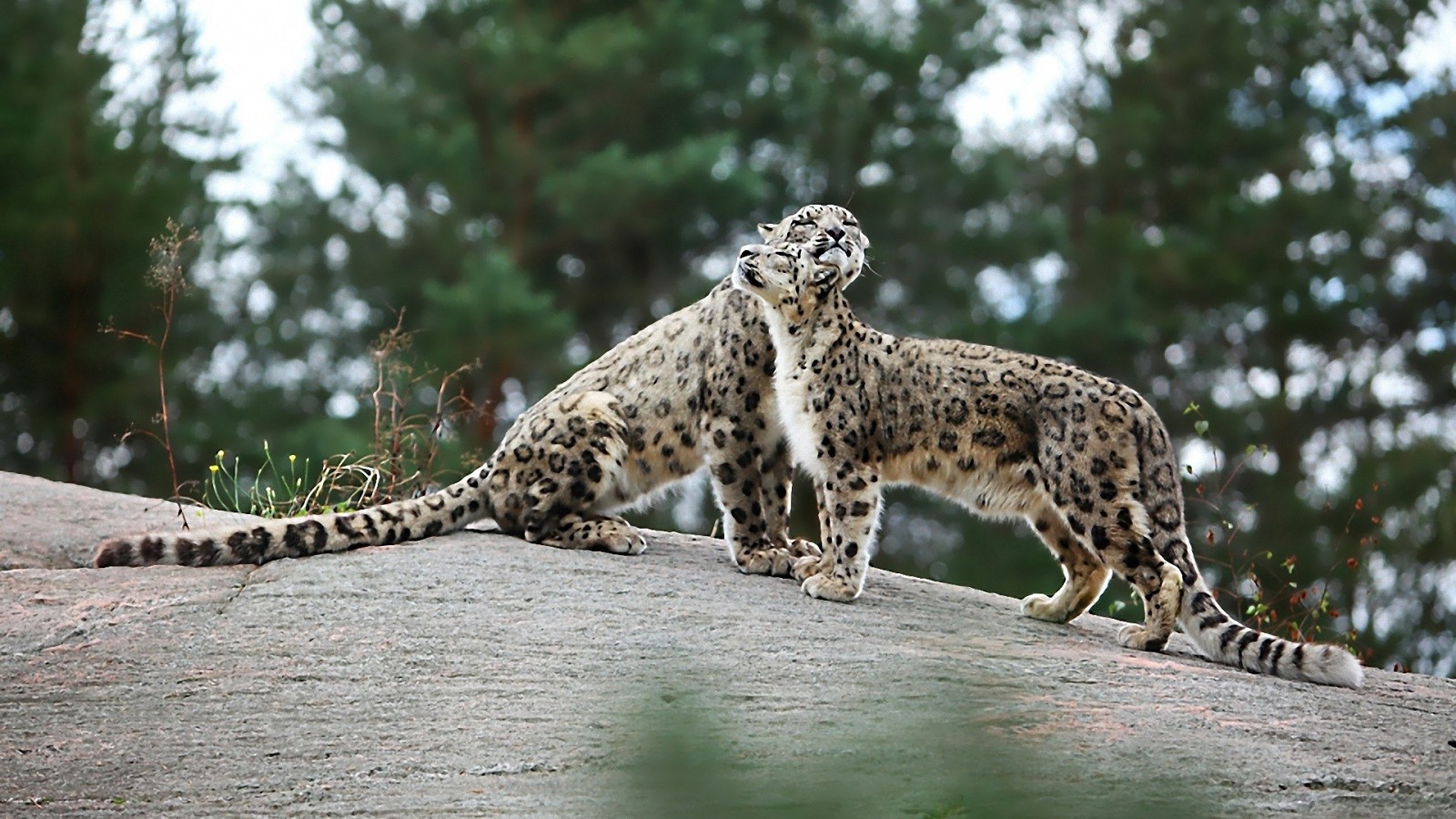 Леопарды, пара, нежность, хищники, камни, животные, HD обои, картинки - 1600x900