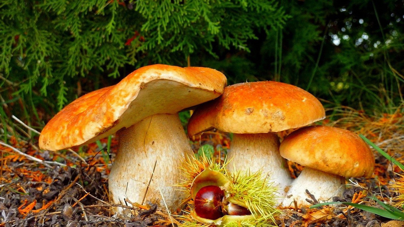 Лесные грибы hd обои - 1366x768