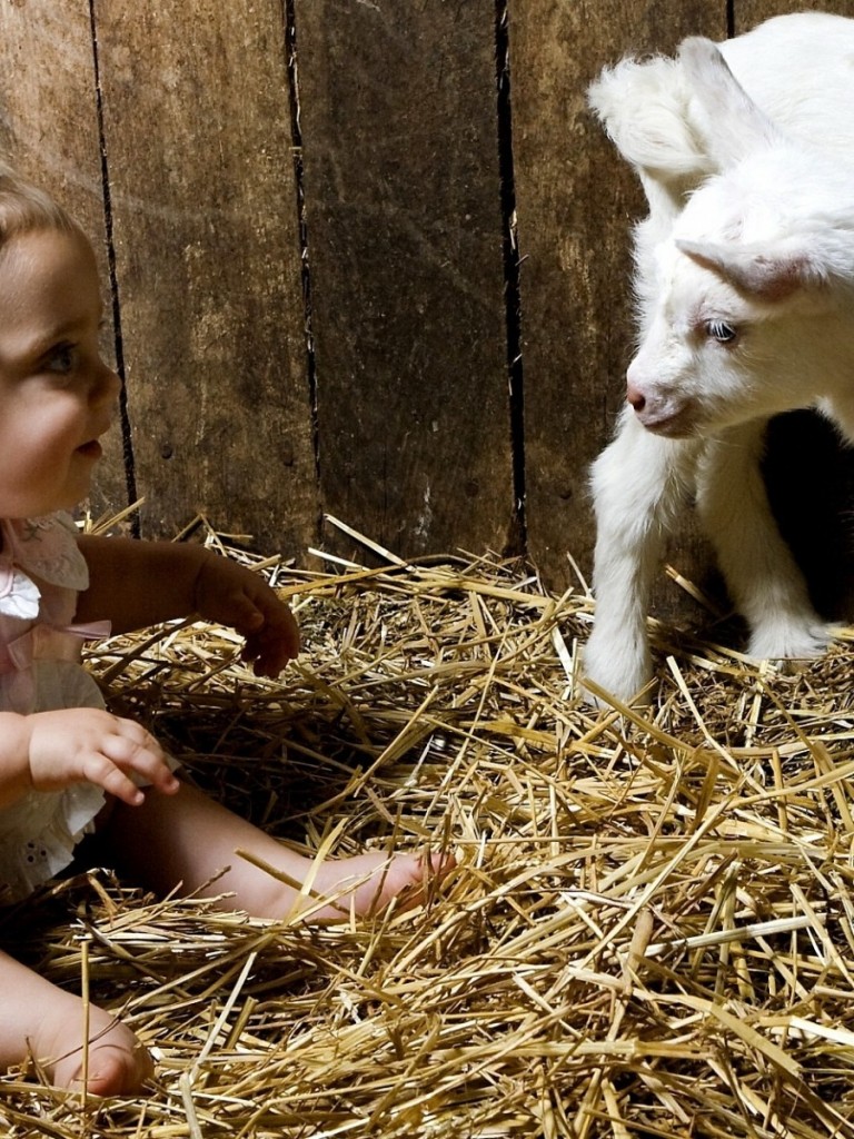 Маленькая девочка с козленком в хлеву - Non-retina iPad
