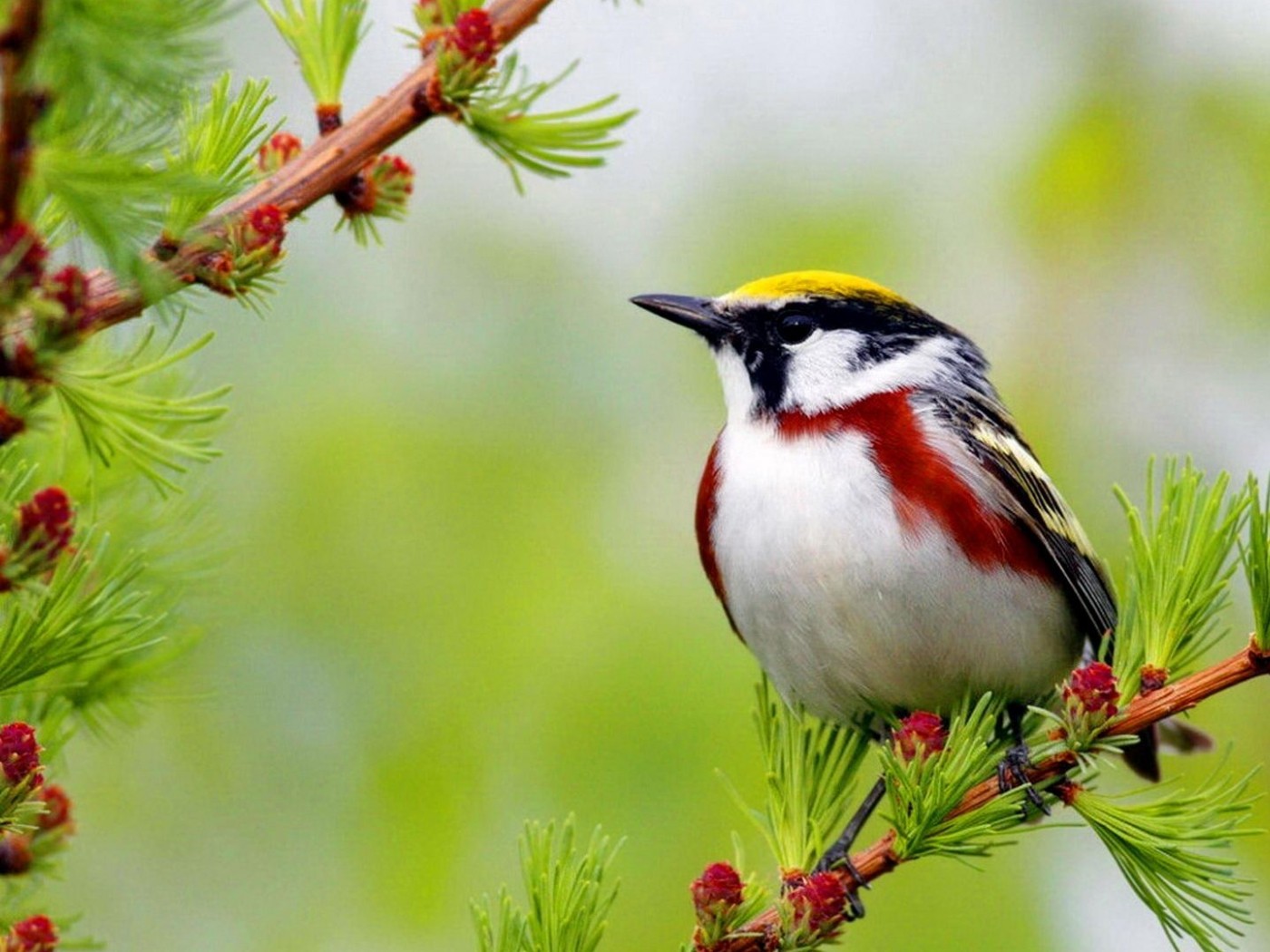 Маленькая птичка на ветке - 1400x1050