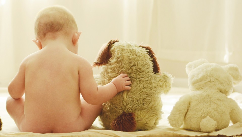 Обои голенького малыша с плюшевыми игрушками - 960x544 PS Vita