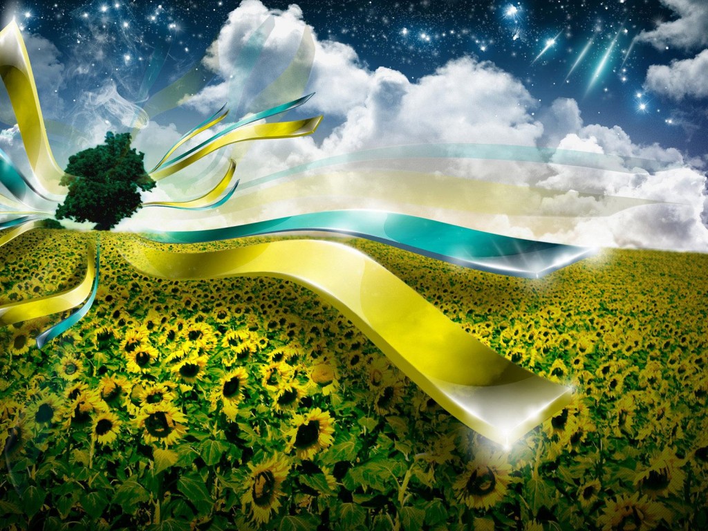 Пейзаж, поле, линия света, воображение, фоны, заставки - 1024x768