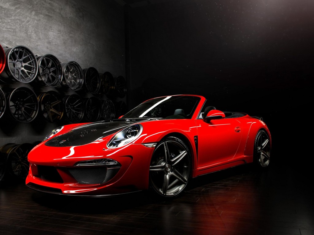 Порше 991 кабриолет красного цвета - 1024x768