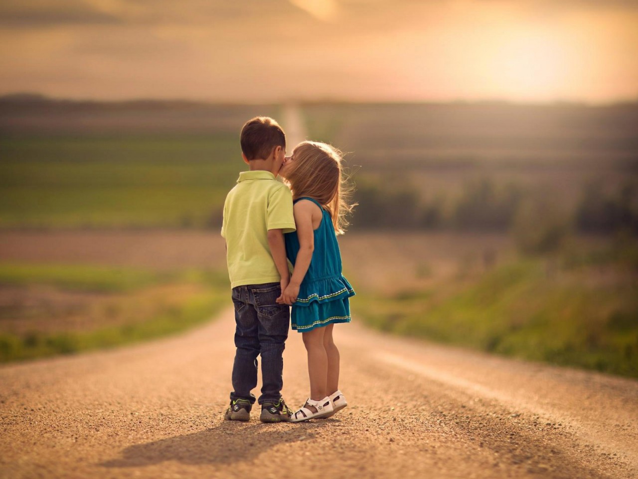 Поцелуй, дети, дорога, первая любовь, малыши, фоны, заставки - 1280x960