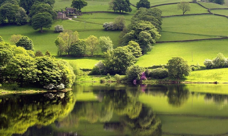 Река, трава, деревья, луг, холмы, фоны, заставки - 800x480