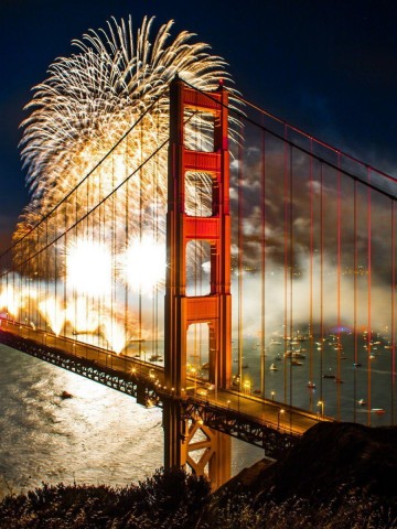 Салют на мосту Золотые Ворота Сан-Франциско - 360x480