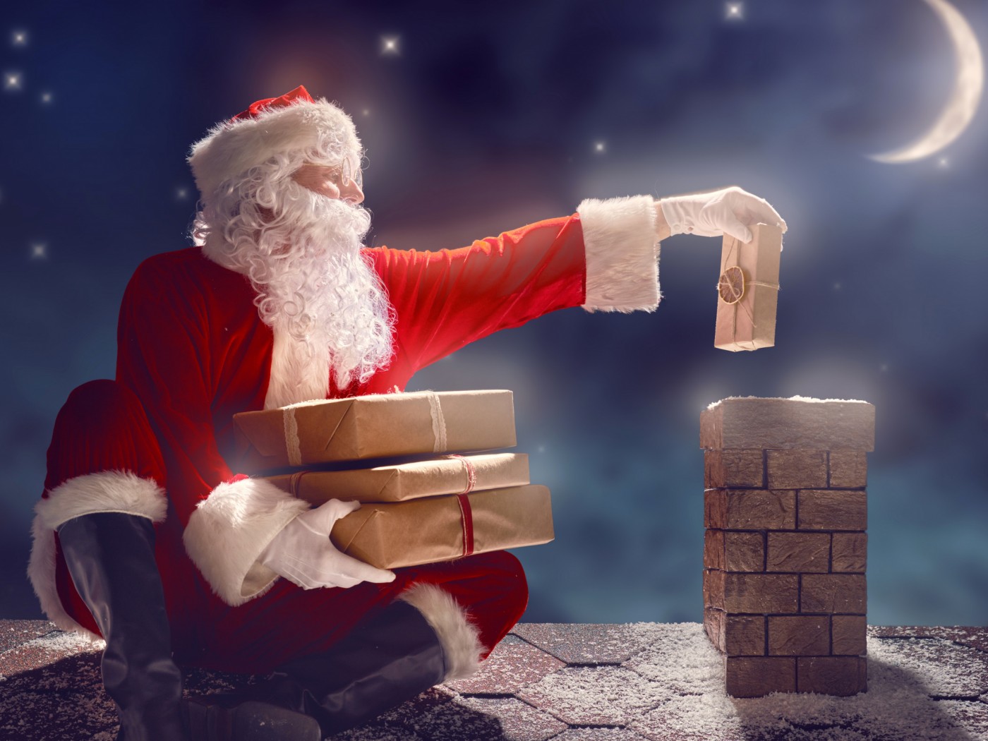 Санта Клаус кидает подарки через дымоход картинки - 1400x1050