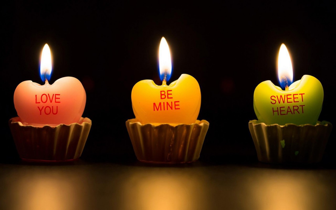 Свечки в виде сердечек на темном фоне, романтические обои hd - 1280x800