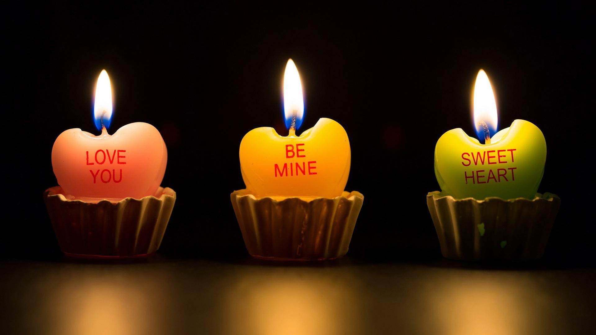Свечки в виде сердечек на темном фоне, романтические обои hd - 1920x1080 (1080p)