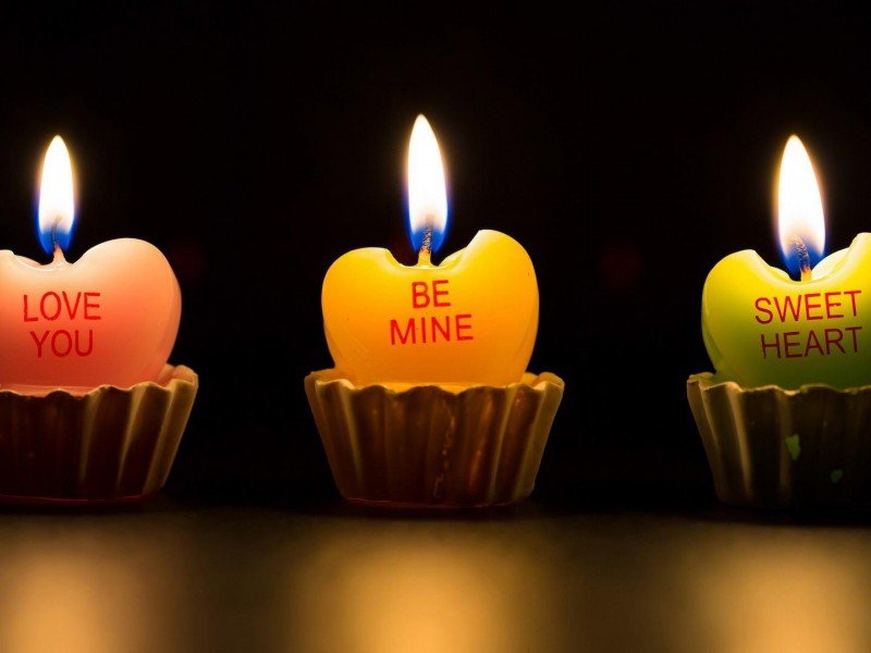 Свечки в виде сердечек на темном фоне, романтические обои hd - 800x600