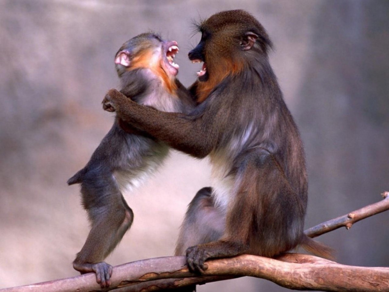 Смешные маленькие обезьянки на ветке дерева обои - 1280x960