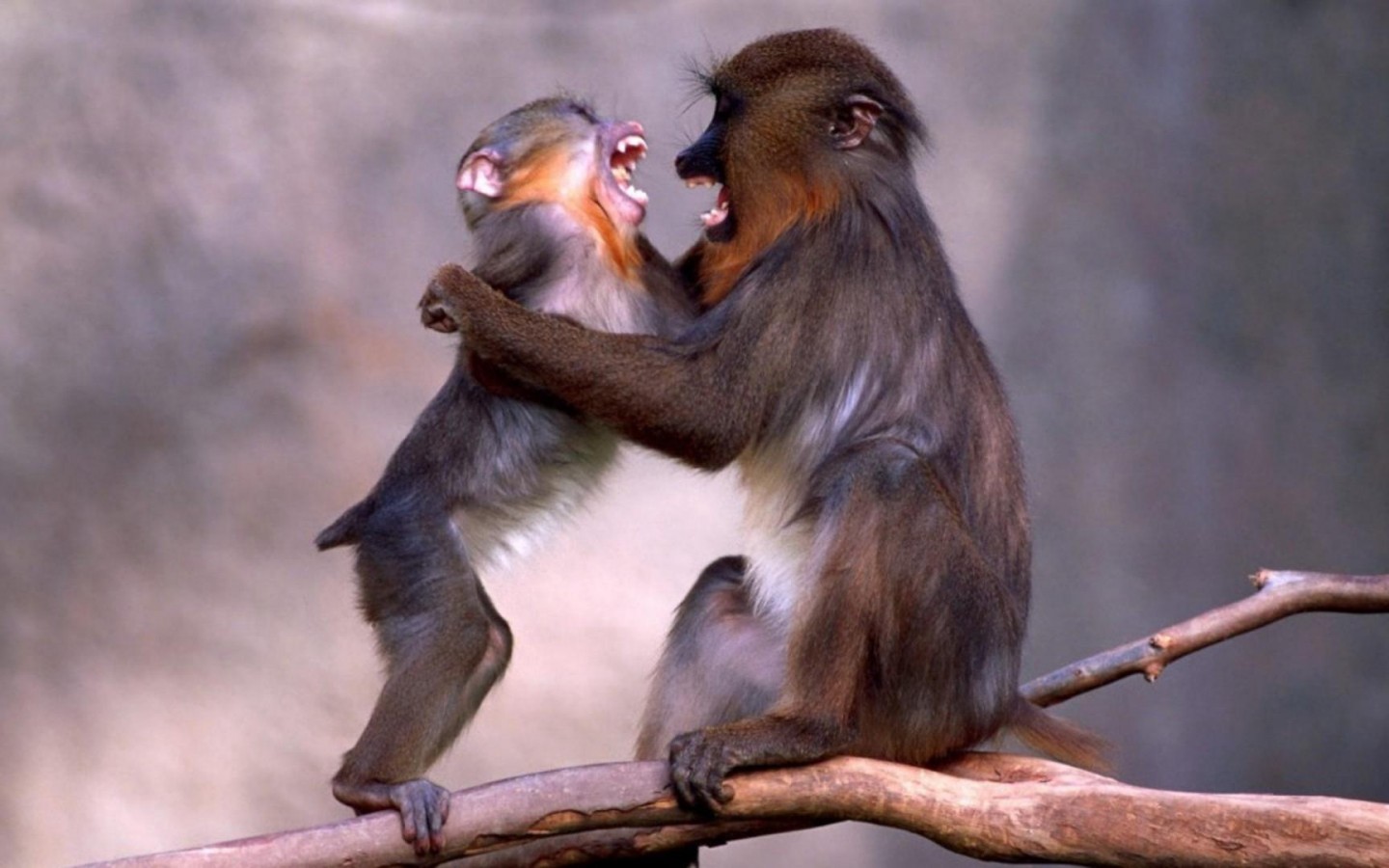 Смешные маленькие обезьянки на ветке дерева обои - 1440x900