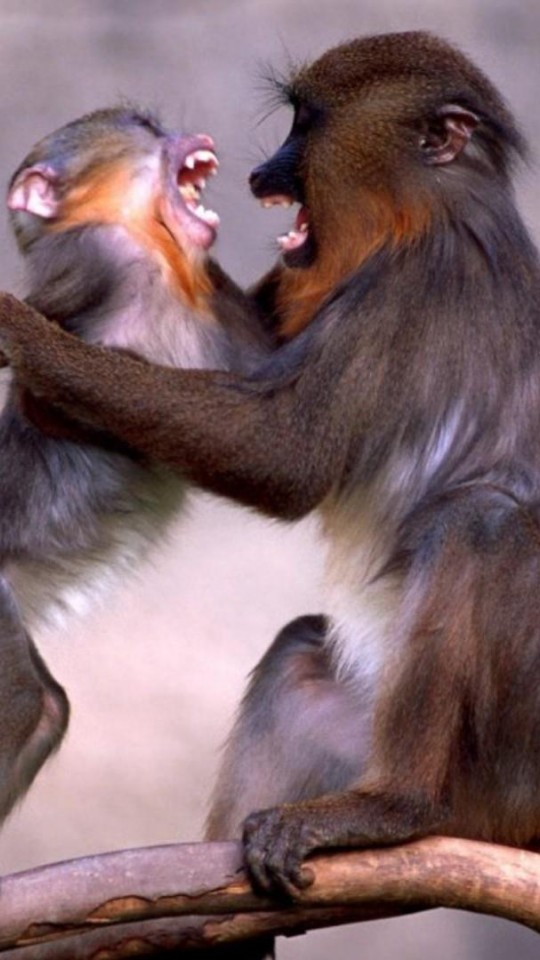 Смешные маленькие обезьянки на ветке дерева обои - 540x960