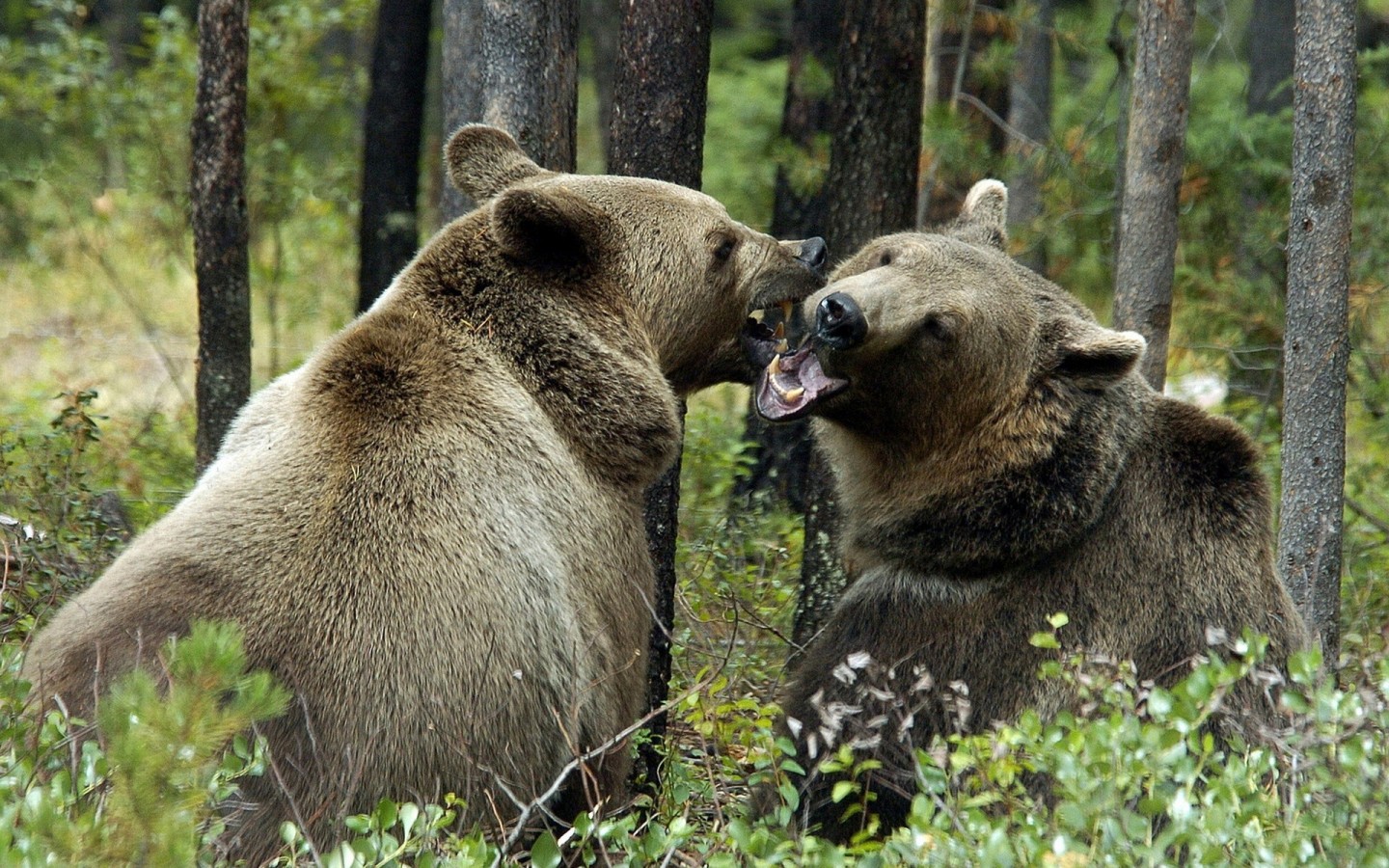 Схватка двух больших медведей в лесу обои hd бесплатно - 1440x900