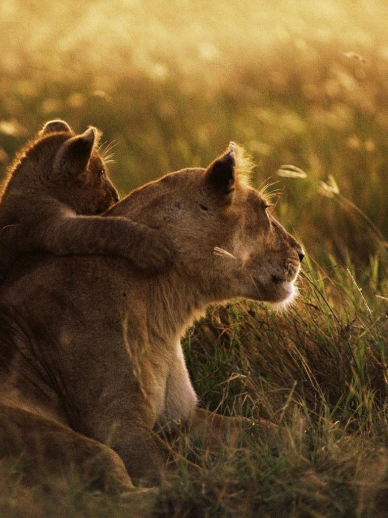 Тигрица со своим львёнком HD обои - Non-retina iPad