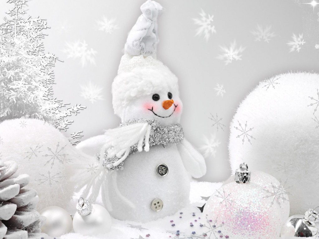 Улыбающийся снеговичок в белом - 1024x768