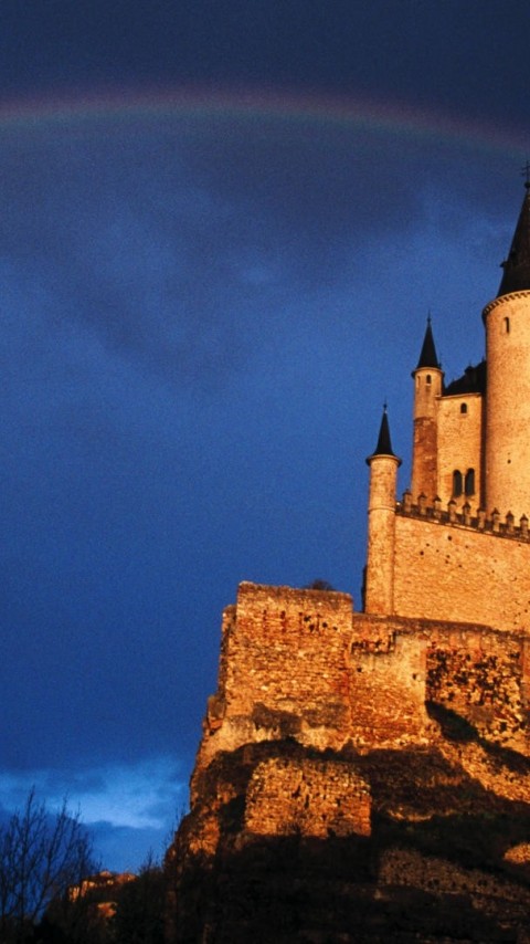 Фото замка из оранжевого камня и радуги - 480x854