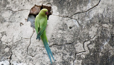 Фото попугая вида ожереловый Крамера сидящего на скале - 480x272 PSP