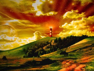 Фэнтези обои природы и маяка 3D фото - 320x240