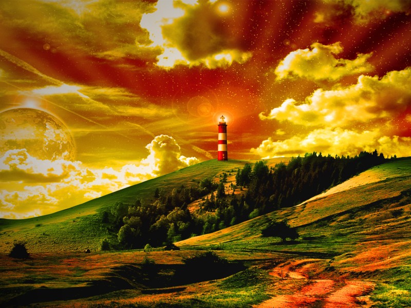 Фэнтези обои природы и маяка 3D фото - 800x600