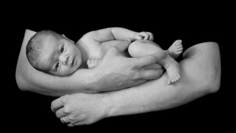 Черно белые обои маленького ребенка на руках - 480x272 PSP