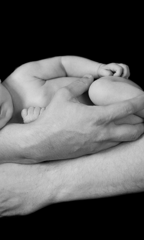 Черно белые обои маленького ребенка на руках - 480x800